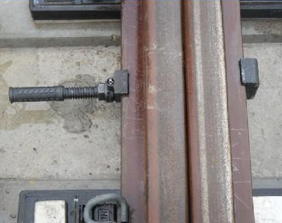 a:頂式頂鎖器,先把頂鎖器調(diào)到最短處,頂鎖器下卡槽處卡在基本軌底邊,頂絲端部對準(zhǔn)斥離軌,調(diào)節(jié)中部絲桿頂?shù)匠怆x軌,最后用鉤型扳手扭緊,再把防松螺母鎖緊,最后把防盜罩蓋上,上鎖鎖閉。拆除時反方向程序進(jìn)行。