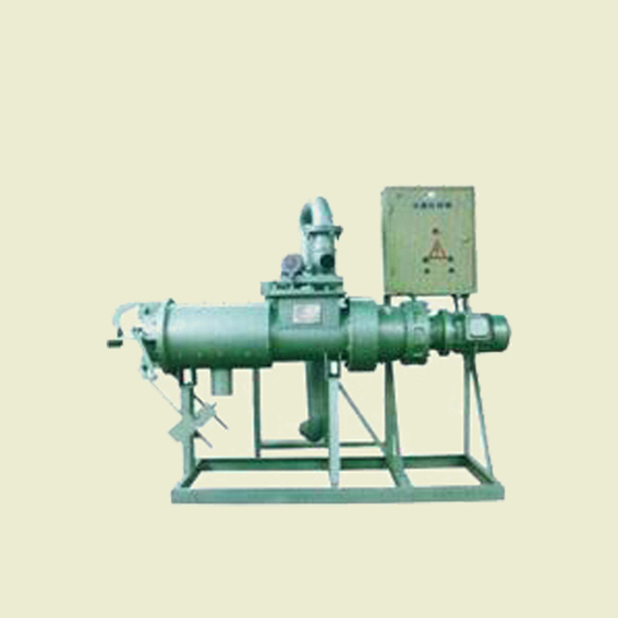螺旋擠壓式固液分離機(jī)主要由主機(jī)、無堵塞泵、控制柜、管道等設(shè)備 組成。主機(jī)有機(jī)體、網(wǎng)篩、擠壓絞龍、振動(dòng)電機(jī)、減速電機(jī)、配重、 卸料 裝置的部位組成。 其工作過程如下:無堵塞泵將未經(jīng)發(fā)酵的豬糞水泵入機(jī)體,在振動(dòng)電機(jī)的作用下加速落料,此時(shí)經(jīng)動(dòng)力傳動(dòng),擠壓絞龍將糞水逐漸推向機(jī)體前方,同時(shí)不斷提高前緣的壓力,迫使物料中的水分在擠壓帶濾的作用下擠出網(wǎng)篩,流出排水管。擠壓機(jī)的工作是連續(xù)的,其物料不斷泵入機(jī)體,前緣的壓力不斷增大,當(dāng)大到一定程度時(shí),就將卸料口頂開,擠出擠壓口,達(dá)到擠壓出料的目的。為了掌握出料的速度與含水量,可以調(diào)節(jié)主機(jī)下方的配重塊,以達(dá)到滿意適當(dāng)?shù)某隽蠣顟B(tài)。使用螺旋擠壓式固液分離機(jī),其自動(dòng)化水平高、操作簡單、易維修、日處理量大、動(dòng)力消耗 低、適合連續(xù)作業(yè)。其關(guān)鍵部件選用不銹鋼材料制成, 整機(jī)重量近半噸且外形尺寸較小,是規(guī)?;B(yǎng)豬場理想的固液分離設(shè)備,能大幅度提高固液分離與效益。但同時(shí)對(duì)豬場的排水工藝、環(huán)境的特點(diǎn)、貯糞池的容積與結(jié)構(gòu)、排糞溝的落差等諸多因素又有著嚴(yán)格的要求。首先對(duì)其分離的物料有個(gè)起碼的要求,應(yīng)是未經(jīng)發(fā)酵的糞水,從工藝要求上要修建一個(gè)貯存糞水的貯糞池。如果發(fā)現(xiàn)待分離的糞水濃度太稀,其固化物含量小于3%的時(shí)候,使用擠壓機(jī)會(huì)大大地降低出料效率。為了提高固液分離的效率,就要求在貯料池前修一個(gè)30立方米~40立方米的沉積池,此池略高于貯料池,其池上方留有溢流口,讓較稀的糞水從高位上溢流出去, 其池底會(huì)相應(yīng)沉積得到較濃的物料,此后再進(jìn)行固液分離就可大大提高出料速度了。