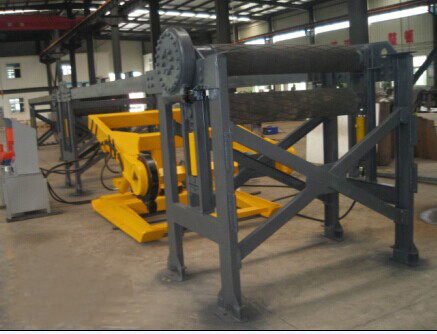 該裝置布置在伸縮帶式輸送機(jī)貯帶倉的后方,整套設(shè)備的動力均由液壓泵站提供。當(dāng)貯帶倉貯滿輸送帶時,先通過固定夾帶裝置把皮帶夾住,防止皮帶跑掉,當(dāng)卷帶完成皮帶接頭連好后才能松開。抽帶機(jī)構(gòu)由液壓馬達(dá)帶動上滾筒轉(zhuǎn)動,下滾筒由兩個液壓油缸支起,將皮帶壓在上下滾筒之間,隨著液壓馬達(dá)不斷的轉(zhuǎn)動,皮帶就松弛下來,此時將皮帶接頭拆開,就可以進(jìn)行卷帶,卷帶結(jié)束后,支承下滾筒的液壓油缸松開,下滾筒復(fù)位。卷帶機(jī)構(gòu)由液壓馬達(dá)帶動,卷帶力大,速度可控,可卷帶長120米左右,搖臂可上下左右擺動以保證卷帶整齊,并可實(shí)現(xiàn)180°內(nèi)旋轉(zhuǎn)把卷好的皮帶移出皮帶機(jī)架。