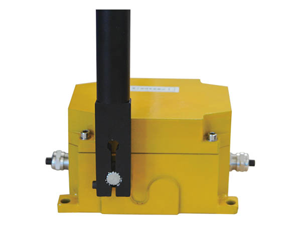 該產(chǎn)品按照一定間隔安裝在膠帶機(jī)的行人一側(cè),相鄰兩臺之間用鋼絲繩通過開關(guān)上的擺臂連接起來。當(dāng)膠帶機(jī)發(fā)生緊急情況拉緊鋼絲繩時,驅(qū)動內(nèi)部凸輪,使行程開關(guān)動作并閉鎖,實(shí)現(xiàn)緊急停車同時發(fā)出報警信號。故障排除后,人工解鎖允許膠帶機(jī)運(yùn)行。
